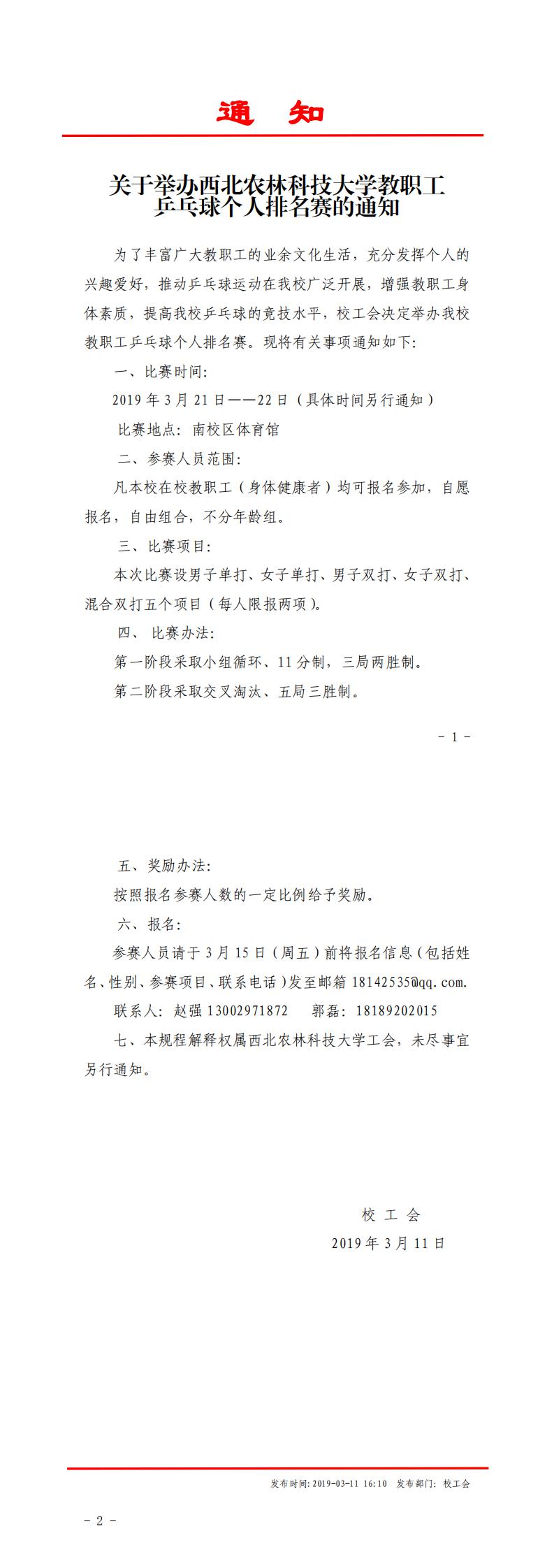 » 关于举办av在线 教职工乒乓球个人排名赛的通知