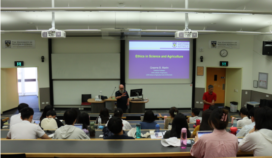 1月29日上午,西澳大学刘世民教授从粮食安全、中澳畜牧生产对比、动物食品竞争、牛羊体内脂肪沉积、动物生产环境足迹、畜禽生产系统与特定环境的交互作用等方面为同学们讲授。29日下午,牛津大学客座教授及西澳大学终身教授Graeme Martin做了《Ethics in Science and Agriculture》的主题报告,详细介绍了农业生产和科学研究中所面临的伦理问题,并提出通过绿色生产、生态循环、动物福利等方面提高农业伦理的途径。
