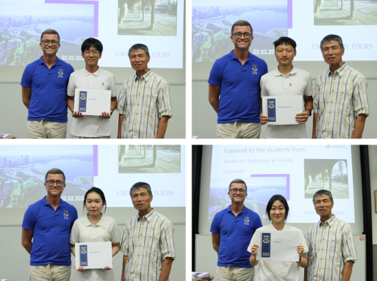 2月2日上午,同学们根据三周海外学习及经历的所学所思,围绕“西澳主要环境问题和农业系统的挑战”、“西澳畜牧生产和环境管理方面的挑战”、“西澳农业发展的措施和建议”、“澳大利亚人文和社会感受”等方面,以小组为单位进行了英文结课汇报。与初来西澳时不同,经过三周的海外学习生活,同学们在汇报过程中各抒己见,侃侃而谈,他们自信、流利、落落大方的英语演讲得到了西澳大学老师们的一致好评。