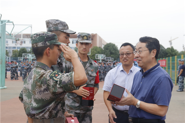 谭红军副总经理介绍了宝鸡得力康乳业有限公司的发展历程,他讲到:得力康乳业公司拥有一流的生产线,给大家发放的产品采用的也是最先进的包装。通过发放酸奶礼包,一是慰问连日来辛苦训练的教官和新生,鼓舞士气;二是让新同学更早的了解畜牧行业;三是希望同学们给公司产品提出宝贵意见,希望全体同学将来勤奋学习,为畜牧业发展贡献智慧和力量。