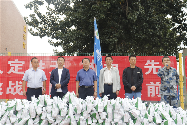 畜牧科技产品来啦!9月16日下午,学院院长姚军虎教授携宝鸡得力康乳业有限公司到军训场看望新生,现场为220名参训新生发放企业生产的风味酸奶大礼包。宝鸡得力康乳业有限公司副总经理辛建军、副总经理谭红军、销售公司经理史晓东、学院党委副书记王力参加慰问活动。