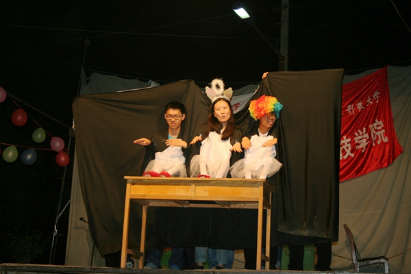 此次文艺汇演在动科学院精品节目《青春修炼手册》动感激情的旋律中缓缓拉开帷幕。汇演中所有的节目均由动科学院与阳光团工委自编自导,源于群众,扎根群众,面向群众,令所有的村民喜闻乐见。极具地方魅力的腰鼓表演以自身壮阔淋漓的特色充分展示出了西北黄土高原农民朴素而豪放的性格;无声有力的手语操《我的好兄弟》以触动人心的情感演绎出了兄弟间最真挚的情谊,引起了大家内心的强烈共鸣;安静唯美的乐器弹唱,活力四射的街舞表演,悦耳动听的歌曲联唱......一个个精彩的节目赢得了场下观众的一致好评。互动环节,当地村民按捺不住内心激动的心情,纷纷上台表演助兴。轻松的步伐,跳跃的姿态,充分展示出其隐藏在质朴外表下青春时尚的一面,也让大家感受到了村民们积极向上的生活态度及简单淳朴的民风。最后,此次文艺演出在恢宏壮观的舞蹈中圆满落下帷幕。