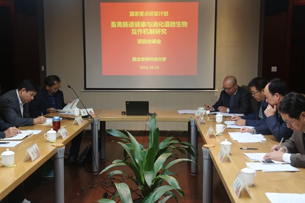 10月14日,为更好地推进国家重点研发计划项目“畜禽肠道健康与消化道微生物互作机制研究”的申报工作,进一步协调、明确相关参与单位的研究目标、研究任务,学校组织了中国农业大学、浙江大学、南京农业大学、中国科学院亚热带农业生态研究所、重庆市畜牧科学院等任务承担单位在我校举行了项目申报协调会。学校科学技术发展研究院常务副院长韦革宏、重大项目处处长孙楠、av在线 党委书记赵延安、项目申报牵头人姚军虎教授以及项目各参与单位任务负责人及相关专家参加了会议。