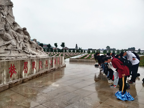 细雨迷蒙,纪念馆周围苍松翠柏林立,庄严的气氛环绕周身。面对纪念碑,面对党旗,各位党员重温入党誓词,牢记共产党员的责任与使命。进入馆内,大家更加切身地了解了此次战役的全过程及其历史意义。看着展柜中一件件战士的遗物,墙上一幅幅战役的画作,周围一个个战士的名字,大家仿佛重新进入中国近代史,回到了那个战火纷飞的年代。在那时,革命先辈们面对敌人的炮火毫不畏惧,他们有着坚强的意志和对革命的信心,这种无穷的力量深深烙印在了在场每个人的心里。