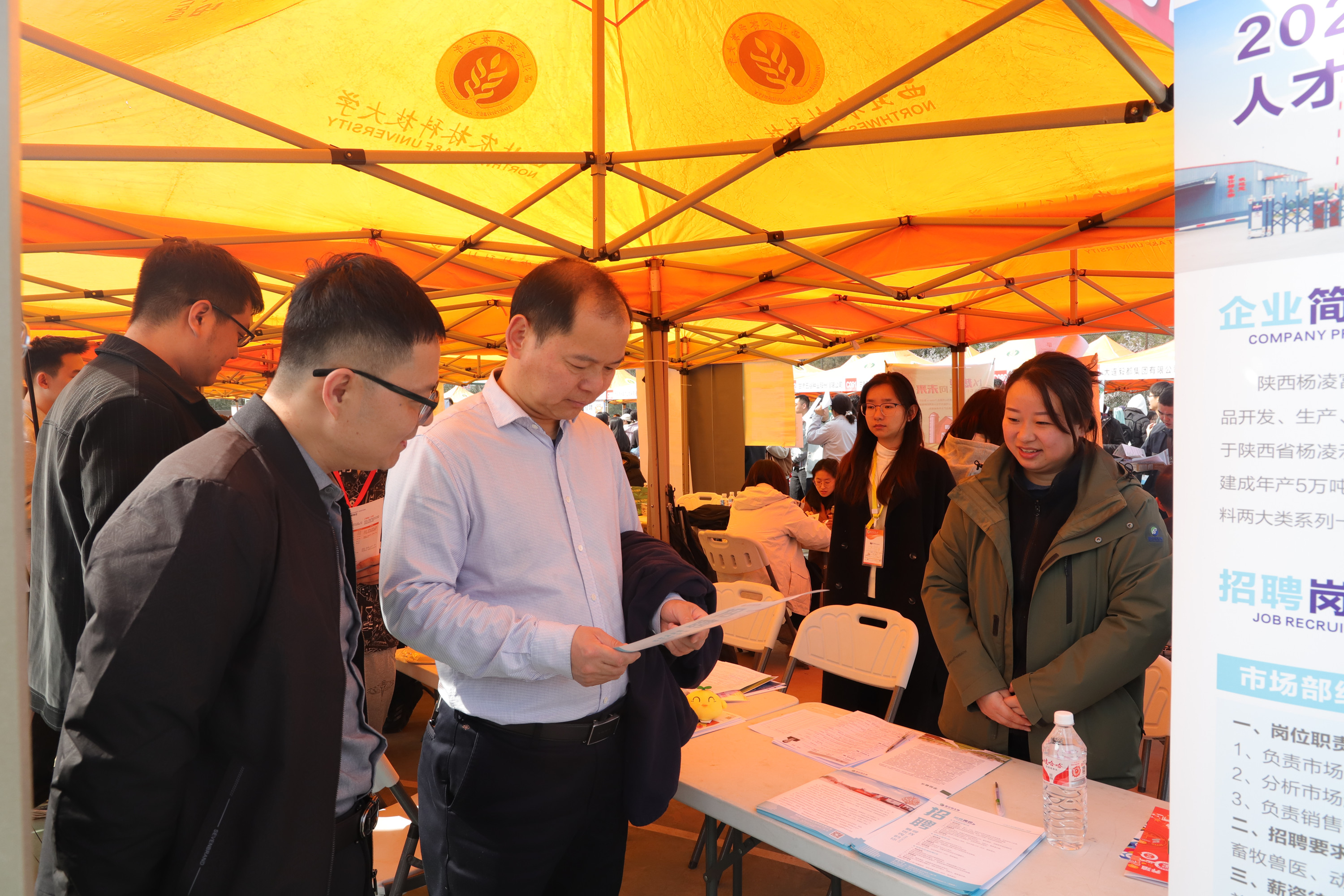 3月22日上午,学校春季综合类双选会暨低年级学生暑期实习招聘会在南校区田径场举办,学院党委书记曹军会,副书记丁天生,辅导员张宇、师筝、刘瑞亮、王嘉欣、彭治骞、李翔宇来到现场,同与会用人单位洽谈交流,为求职毕业生做就业指导、为低年级学生做职业规划。50余家行业内知名企业参加了本次双选会,他们带着优质岗位、福利高薪来到春暖花开的西农校园,为广大毕业生提供就业资源、提振求职信心。