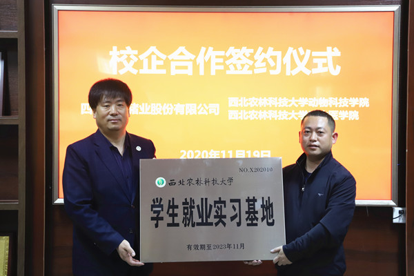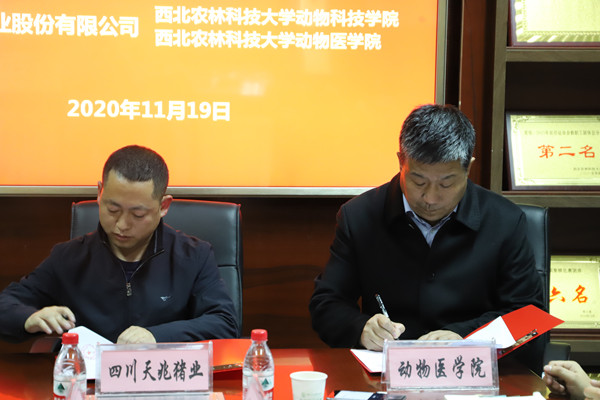 会上,吴继东、王力分别代表动物医学院、av在线 与四川天兆猪业股份有限公司签订《战略合作框架协议书》与《av在线 校外就业创业实习基地协议书》。根据协议内容,四川天兆猪业股份有限公司共捐赠30万元用于学生活动、学术交流及优秀学生、学生干部奖励,其中动物医学院、av在线 各15万元。学校同意四川天兆猪业股份有限公司为我校挂牌的就业创业实习基地,罗建峰代表学校授牌。