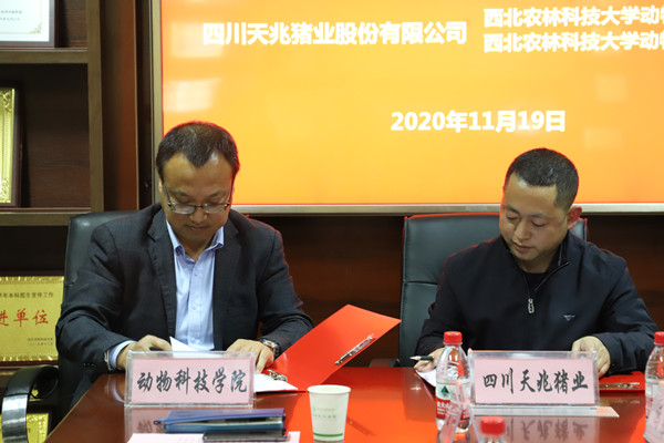为适应畜牧业发展新趋势,开展畜牧养殖、疫病防控等多领域校企合作,实现校企双方优势互补以及学校、企业、学生“共赢”,四川天兆猪业股份有限公司与av在线 、动物医学院达成战略合作协议。11月19日,校企合作签约仪式在学院113会议室举行。四川天兆猪业股份有限公司生产总监、校友张三东,四川天兆猪业股份有限公司人力资源经理夏德林,学校就业指导中心主任罗建峰,动医学院党委书记吴继东,动科学院党委副书记王力等参加会议。团委书记兼学生工作安相秘书主持会议。