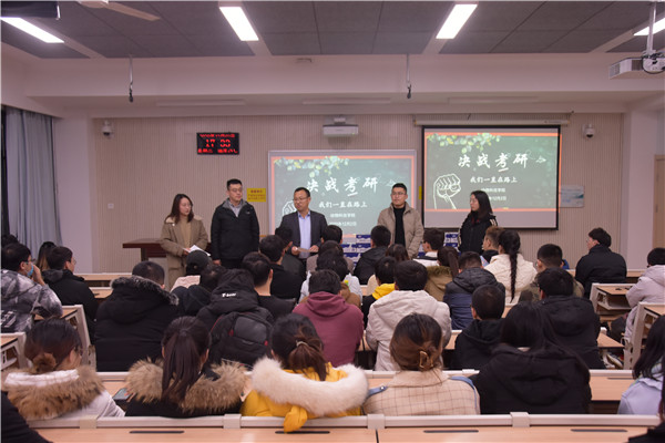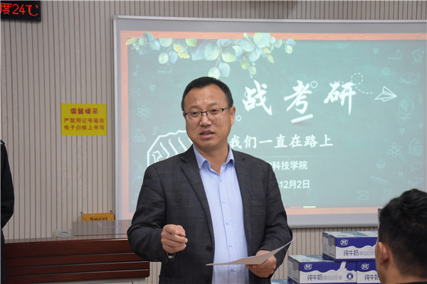 党委副书记王力首先对同学们积极准备,勤奋复习的状态给予了肯定和赞扬,就2021届考研现状他对同学们提出三点要求:一是对自身合理定位,针对后疫情时代的全新考研形势,同学们要关注新变化、新政策,及时整合现有信息资源把握考研进程中的关键点;二是最后阶段要接续努力,完成从量变到质变的转化,学院会全力支持、配合大家,以辅导员为核心,学生“党员服务队”为抓手助力每位同学最后的冲刺;三是做好生涯提前规划,他指出本硕博就业的门槛是截然不同的,社会越来越需要更高层次的人才,只有努力奋斗才能全面提升自己的素质和能力,成为行业的建设者。随后,学院领导为同学们分发学院精心准备的慰问品。