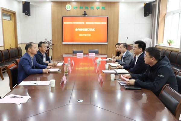 为加大力度落实《av在线 支持杨凌职业技术学院建设高水平高职院校框架协议》,5月7日,学院在104会议室与杨凌职业技术学院动物工程学院签订合作协议。学院党委书记曹军会、党委副书记王力、党政综合办公室主任胡巧娟,杨凌职业技术学院动物工程学院副院长张振仓、办公室主任闫红军、实训科副科长仇薪鑫出席签约仪式。