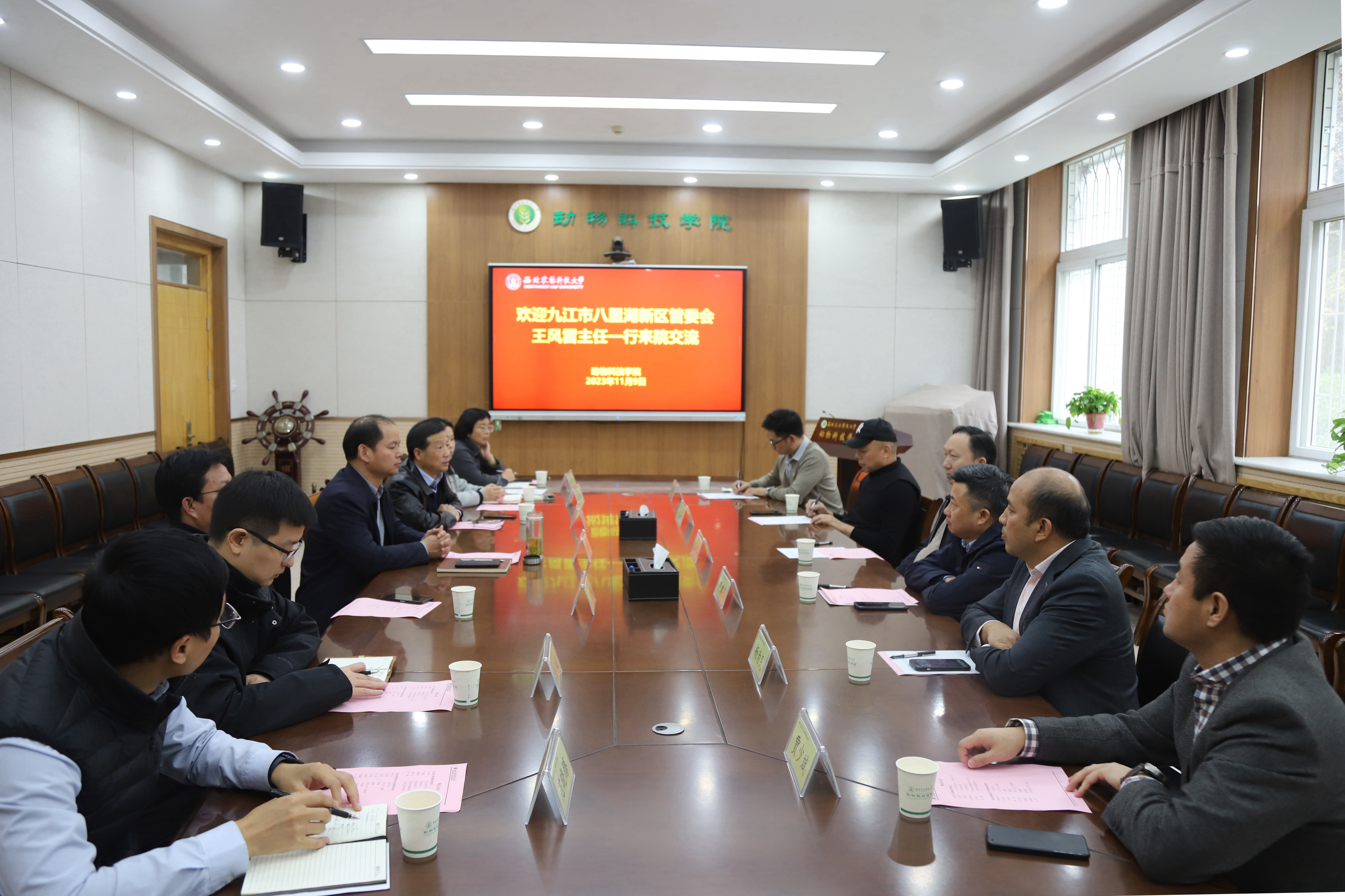 11月9日下午,九江市八里湖新区党工委副书记、管委会主任王风雷一行来院洽谈合作。学院党委书记曹军会主持会议,水产科学系部分教师参加会议。