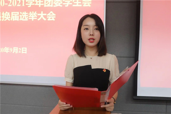 为进一步加强学院团学队伍建设,促进团学队伍的壮大与新生力量的凝聚,深入领导和组织学生开展自我教育、自我管理、自我服务,9月2日晚19:00,学院在北校区8T04教室成功举行2020-2021学年团委学生会工作人员换届大会。学院党委副书记王力及全体辅导员出席大会。会议由团委书记兼学工秘书安相主持。