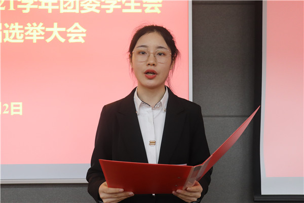 会场内响起庄严、神圣的国歌,参会人员全体起立,目光坚定,会议正式开始。辅导员王钰晨宣读了av在线 2020-2021学年团委学生会工作人员换届选举办法和候选人名单,辅导员张明侠宣读了总监票人、监票人、总计票人、计票人名单。