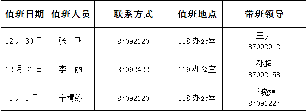 2018年元旦假期值班安排