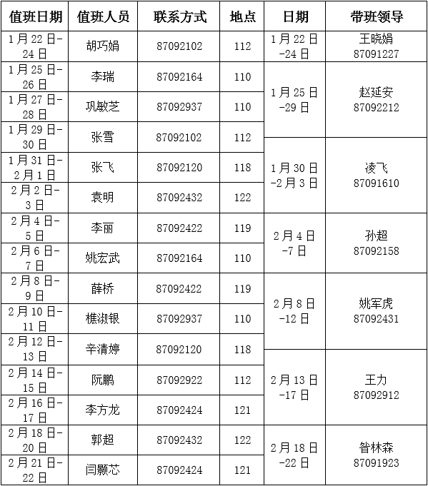 1. 值班时间:上午8:30—11:30,下午2:30—5:30