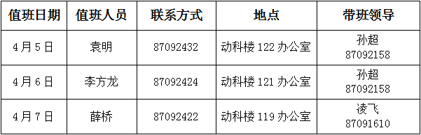 注:1. 值班时间:上午8:30—11:30,下午2:30—5:30
