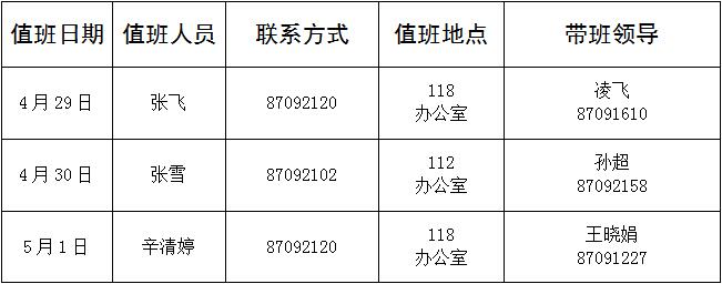 注:1. 值班时间:上午8:30—11:30,下午2:30—5:30