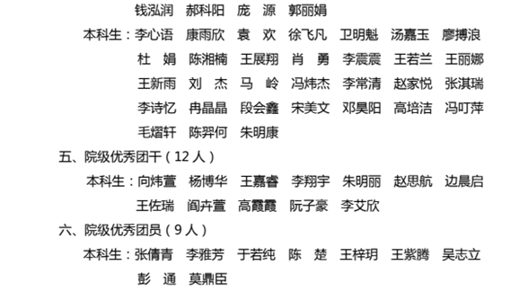 根据学校“关于组织开展2020年度av在线 ‘五四’评优的通知”文件精神,经个人申请、班级推荐、学院初审,现将拟推荐的“五四”红旗团支部、政治理论学习先进团支部、优秀共青团干部、优秀共青团员结果公示如下: