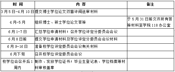 1. 请各学院(系、所)务必将上述安排通知到各位导师及研究生,合理安排时间,做好研究生论文答辩和学位授予工作。