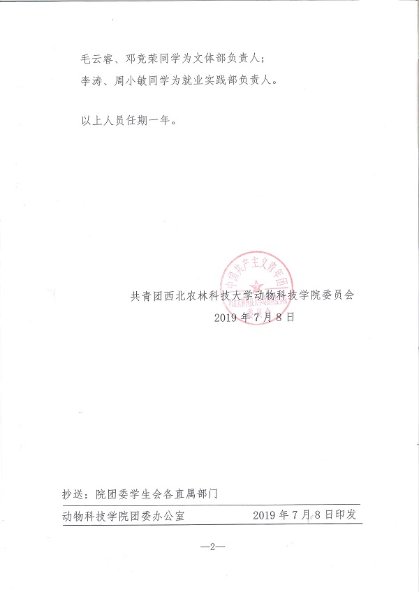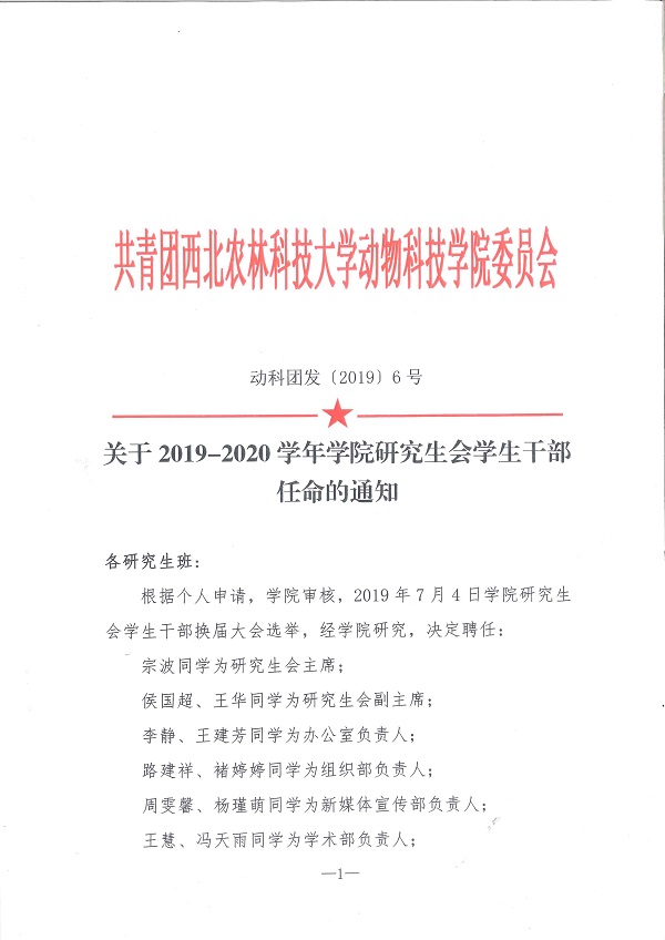 » 关于2019-2020学年学院研究生会学生干部任命的通知