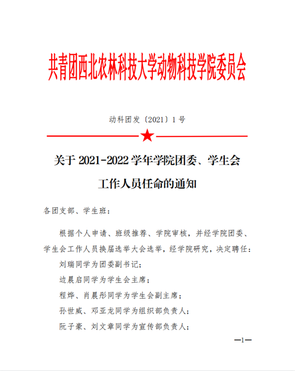 » av在线 2021-2022学年团委、学生会学生工作人员任命的通知