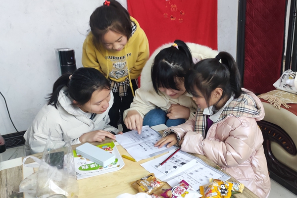 到达寨东村后,支教志愿者们迫不及待地找到了自己对应小朋友的家,开始辅导小朋友们的课后作业。伴随着笔尖划过纸张的沙沙声,屋里时常传来小朋友疑惑的发问和志愿者们耐心的解答,或许是被小朋友们求知若渴的眼神所打动,温暖的阳光也慢慢透过窗户照在了温声细语讲解的志愿者们身上以及小朋友们从未停下的笔尖处。小朋友们的全神贯注和志愿者们的认真负责,使作业辅导结束的时间比预期早得多,所以小朋友们跟着自己的“小老师”来到了户外享受灿烂的暖阳。有些小朋友拉着“小老师”跑到了休息区,玩起了村里的健身设施,欢声笑语持续不断;其他小朋友们和“小老师”们玩起了老鹰捉小鸡的游戏,阳光洒在他们奔跑的身影上,活力且温暖。
