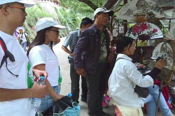 自麦积区向东,沿山路而上,一路有小商贩们兜售着各种各样琳琅满目的天水传统木扇,志愿者们认真寻找,仔细询问当地的村民,在经过不懈努力后,终于找到了画扇技艺人杨兰女士。杨兰擅长风水景色画扇,技艺传自于父亲,画扇将就落笔劲度和笔锋角度,代代相传的技艺蕴含着人们对于自然风光的憧敬和对生活的美好期许。志愿者们饶有兴致地的观看了各式画扇,并对杨兰女士的精湛技艺啧啧称叹。最后志愿者们去欣赏了天水字画,有幸看到了于右任先生的大作,作为西农学子,涌上浓浓的亲切感与敬畏感。