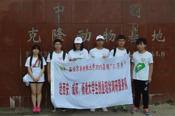 8月13日,关中地区大学生创业现状调研与政策宣讲队一行人徒步来到我校北部的中国克隆动物基地,参观了克隆羊“阳阳”和萨能奶山羊,对我校科研成果后期的利用有了一个简单了解。