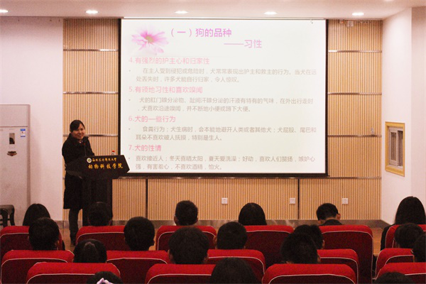 高智商的金毛猎犬、拉布拉多犬不仅能用来导盲,还能帮助大人照顾小朋友;多种多样、漂亮听话的鸽子在中国的通讯历史中更是占据了非常重要的地位,是人类送信的好帮手。除了基本动物简介,报告会最后,王老师向大家强调了养宠物时的注意事项,提醒同学们在养宠物之前一定要慎重考虑,对动物们负责。水产151班的杨世博同学在听完报告会后感叹到:听完报告会后自己更喜欢小动物了,也间接让对动科专业产生了更多的了解。
