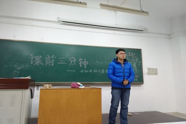 为提高同学们自我表达能力,增进同学之间的感情,12月4日,动科146班在8号楼8202教室举办了课前三分钟演讲活动。本次活动以“我和我的大学考试”为主题,同学们都积极参与,热情高涨。