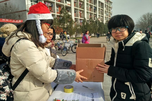 24日中午,活动组织人员在活动地点集合完毕后,迅速有序的布置活动场地,齐心协力将前一天晚上收集到的新年祝福卡片贴在画板上制成展板,供来往同学观看欣赏,向其传播传递关爱奉献爱心的思想。同时,工作人员还向过往同学发放介绍活动宣传单,积极鼓舞发动更多人向福利院内的孤寡老人和留守儿童捐送圣诞礼物,为他们带去真挚的问候。此次活动引起了师生们的强烈反响,来往同学们纷纷积极响应。同时,av在线也向热情配合此次活动,积极参与其中同学们表示了诚挚的感谢之情,并为其发放了精心准备的小礼物,活动持续近一个小时后落下帷幕。