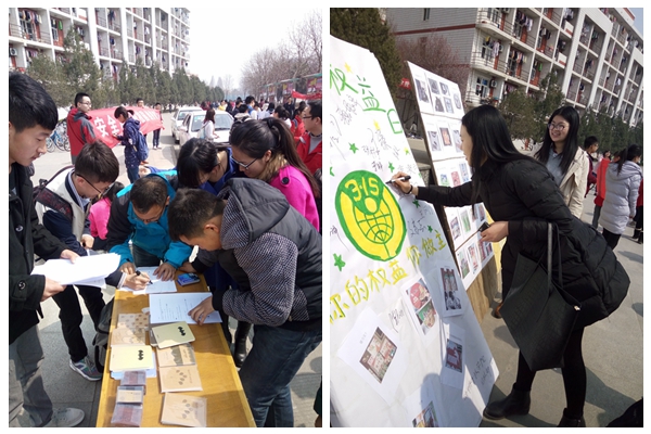 3月15日中午,av在线 纪检部在西超雕塑举行了以“明辨真假,学会维权”为主题的消费者权益宣传活动。
