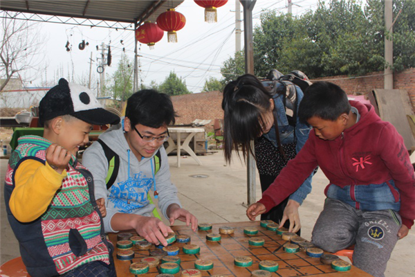 在了解了孩子们的生活之后,村助们有感而发。留守儿童们的孤单寂寞,其他人难以体会。父母进城打工、被爷爷奶奶带大的孩子们渴望着孩提时候应有的快乐,每天 “两点一线”式往返于家庭和学校、周末被迫上各种补习班的生活,让孩子们变得内敛,而大家一起闲暇时的娱乐可能都成了奢望。“与单纯的物质救助相比,孩子们更需要心理疏导与情感慰藉,以及精神、文化层面的‘营养输送’。”村助们与村长谈话中提到。因此,村助们与孩子们一起游戏,让孩子们体验生活的美好。在玩游戏的同时,村助们也积极引导孩子们乐观向上的生活态度,让孩子们知道学习中要劳逸结合,才能更好的集中精力学习。