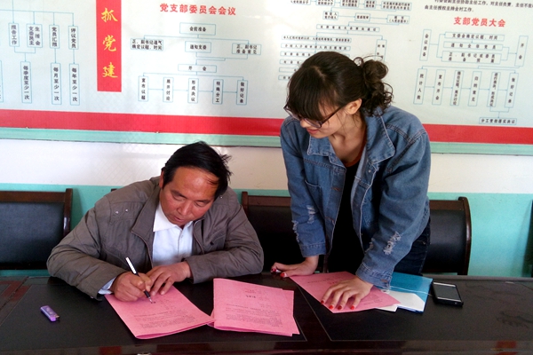 经过前期和戴军劳村主任的联系,村助于当日下午三时整来到了寨东村村委会,和戴军劳书记就协议进行了商讨。在认真的阅读了协议书之后,村主任表示愿意同av在线-在线观看av 签约社会实践基地,并对日后的共同发展表示极大的期望。自此,大寨乡寨东村正式成为av在线 大学生社会实践基地。