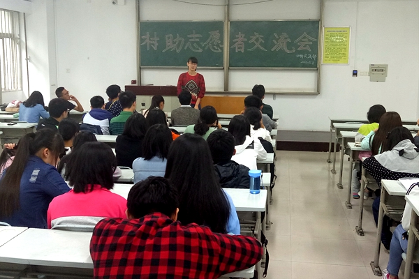 为促进大学生村主任助理工作更好地开展,加强学生参与社会实践和志愿服务活动的力度,增强其社会责任感和使命感。 5月8日下午,av在线于北校区8号教学楼8118教室开展了一次以“志愿之路,村助同行”为主题的交流会。av在线各村村主任助理以及15级的53名村助志愿者参加了此次交流会。
