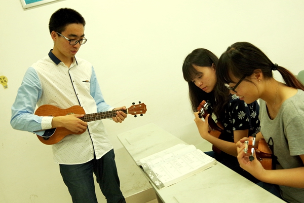 据悉,尤克里里俱乐部的同学们出于成品曲目训练阶段,将于今后陆续开展尤克里里小型演奏会等多种形式的汇报表演。