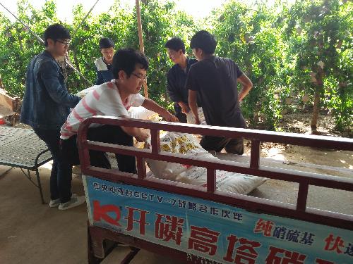 在与合作社负责人的接触与沟通中,队员们了解到了该合作社蚜虫难以防治,在周自云、张世泽等老师的指导下,队员们制定了防治方案。在此次活动中,队员们将方案分别以口述和做成纸质版的形式,给合作社负责人具体讲解蚜虫防治措施,同时,队员们还针对农药的使用提出建议。合作社正处于忙碌的时期,队员们帮助负责人运送肥料,将肥料合理的使用方法推荐给负责人,运用所学知识,把浪费与污染降到最低,将环保意识普及。