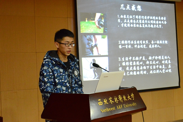 会上,获奖同学向大家展示了优秀作品。其中有设计别致的早卡,抽象而不失西农特色的绘画,精心制作的创意灯笼等。同学们以多姿多彩的方式寄托着自己的心情与感悟。av在线动科1502班韩萌萌精心拍摄的照片使人眼前一亮,凭借独特的视角,清新自然的风格荣获了摄影组第一名。“五个文明”工程系列活动在雷鸣般的掌声中落下了帷幕,并受到了各院师生的一致好评。