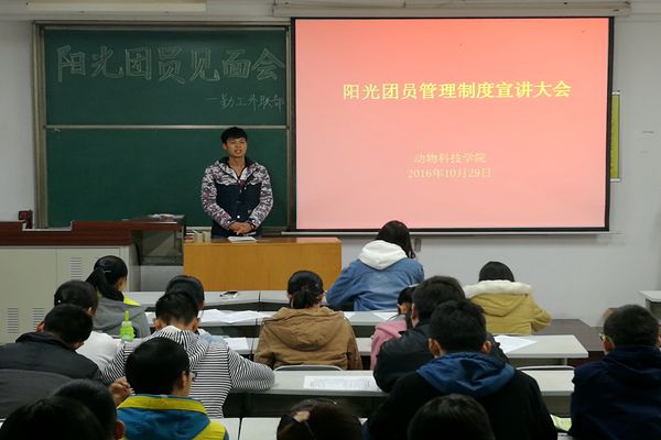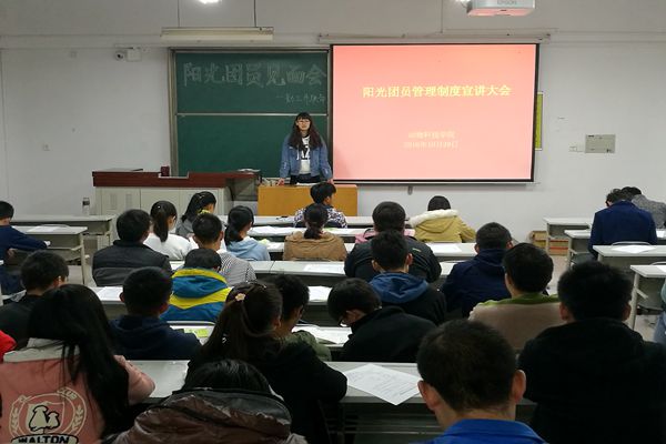 为使av在线学生充分发挥奉献精神,积极回报社会,了解自身的责任和义务。近日,av在线于在八号教学楼举行了以“快乐生活,常怀感恩,无私奉献”为主题的阳光团员见面会暨管理制度宣讲会。我校阳光团工委田勇副书记应邀出席了本次会议。