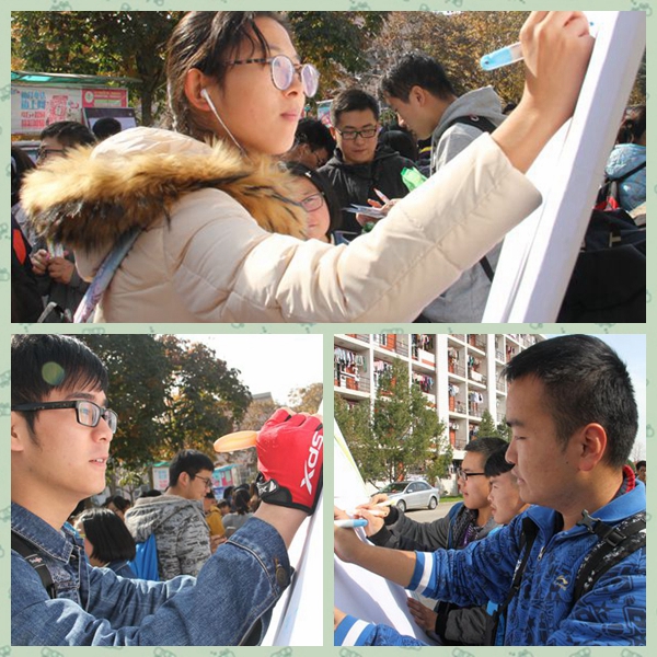 在前期的准备活动中,宣传部部委们认真耐心,一次次地修改策划,最终为活动的顺利开展打下了坚实的基础。活动当天,精心布置过的“写意板”吸引了众多同学驻足。参加活动的同学们或写出自己对美好生活的期待,或对自己心仪的同学表白,或表达对朋友的祝福,或写下舍友的联系方式“卖舍友”……欢声笑语中裹挟着同学们对生活的热爱萦绕在活动现场,激情澎湃的青春气息也感染着在场的每一个人。av在线辅导员闫颢芯老师也写下“最爱的小动物们开心快乐成长”,对动科学子深深的祝福。那写意板上的一笔一划,不仅是搞怪、逗趣,更是对舍友、同学、朋友的一份深情,是在这个节日里最美好的祝福。