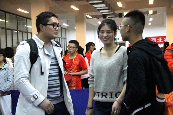 11月14日,av在线 院系间乒乓球团体赛于小球馆拉开帷幕。在第一场,av在线女子乒乓球对阵生命科学学院,男子乒乓球对阵国际学院。av在线兼职辅导员张涛到比赛现场指导并为运动员加油。