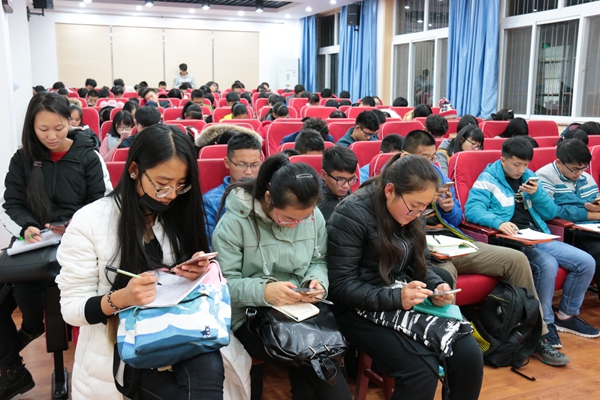 会议伊始,2016级辅导员闫颢芯老师对同学们提出明确要求和殷切希望,并对杨增荣老师进行了简短介绍。辅导课程中,杨老师通过考前准备、真题讲解、强化训练等方面对同学们进行了耐心辅导。首先,老师对四级考试的时间安排、用笔选择、涂卡方式以及答题顺序等细节给出了详细实用的建议。其次,他从四级考试真题出发,引导同学们积极探索命题规律、了解命题方法。紧接着,在同学们熟悉命题规律之后,他重点强调了考试题型与应试技巧,教会同学们通过出题规律的分布而快速选择正确答案。最后,他建议同学们在考前加强真题的练习与单词的记忆,做到“腹中有‘粮’,心中不慌”。