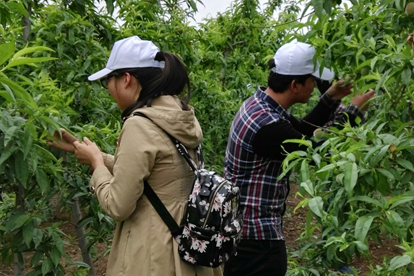 合作社除了种植桃树之外也会向周边出售树苗,同学们也加入到销售队列中。面对前来购买苗种的种植户,同学们还是会羞涩,也不能流利地回答问题,但在负责人的帮助下,同学们克服了困难,学到了销售的技巧,提高了自己的交际能力。此外,为应对桃树病虫害,田园使者们拜访专家,精心准备,为当地村民进行了一次关于防治病害的培训。分别从有害昆虫的生活习性、预防措施及农药的合理使用三个方面为村民普及了预防病虫害的基本知识。同学们锻炼了自己能力的同时,也收获了村民们由衷的感谢。队员李相举回忆道:“这些活动都十分考验交际能力,我们都很珍惜机会,丰富多彩的实践活动是我们步入社会的必修课。”