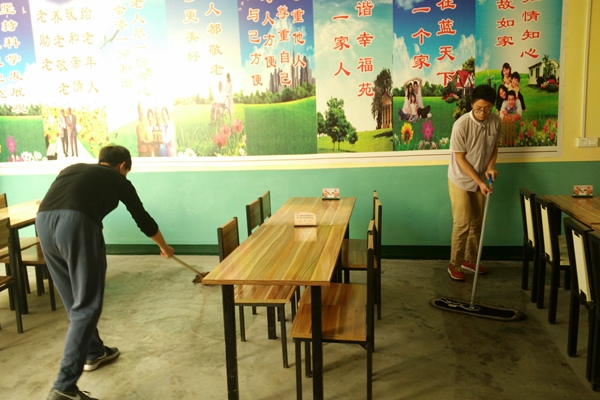 5月1日一大早,志愿者们于北门集合,步行前往杜寨村与当地负责人会面。幸福院负责人听说了志愿者们的来意后表示热烈欢迎:“西农的学生真有心——能在假期里来咱们这做志愿服务,感谢你们!”在进行了简短明确的任务分配后,志愿者们就有条不紊地忙碌起来:志愿者们有的进入内室打扫卫生,有的在大厅中拖地,有的为幸福院擦拭桌椅,有的为种植的花浇水。整个劳动过程中井然有序,志愿者的脸庞上始终绽放着开心的笑容。细心的志愿者还将老人们的储物柜进行了清洁擦拭。看到这一幕,阿姨赞不绝口,“西农的娃们真心细”。随后,志愿者们坐下与老人们亲切交谈,询问老人的日常生活和身体情况,嘱托老人季节变化时要注意身体保暖,饮食要注意卫生,行动要注意安全。志愿者们的诚挚问候如同温暖的春风,吹进了老人们的心里,为平日清静的敬老院带去了许多欢笑声,整个敬老院洋溢着温馨、祥和的气氛。