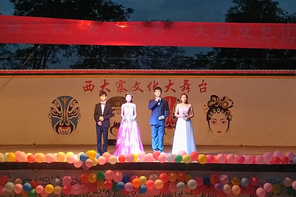 为深入践行和培育社会主义核心价值观,号召广大青年学子深入基层、服务社会,努力营造文明和谐的新农村文化氛围,5月19日,av在线 联合校阳光团工委、生命科学学院、寨东村,寨西村于西大寨文化广场联合举办了以“情惠三农,文艺下乡”为主题的文艺下乡汇演活动。