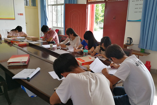 刚到达蒋家寨村村委会,队员们便受到了大学生村官艾涛的热情招待,他带领队员们来到会议室。会议中,学长首先向大家提出了畜牧方面的问题,然后就近年来农村劳动力流失、家畜生活环境受到威胁、家畜饲料粮短缺等问题进行了基本的阐述。了解到畜牧业发展遇到的瓶颈之后,队员们积极出谋划策,通过向老师咨询、网上查阅资料等途径、结合所学专业知识整理了一系列资料。看着集合众人智慧的结晶,队员们的内心成就感也油然而生。