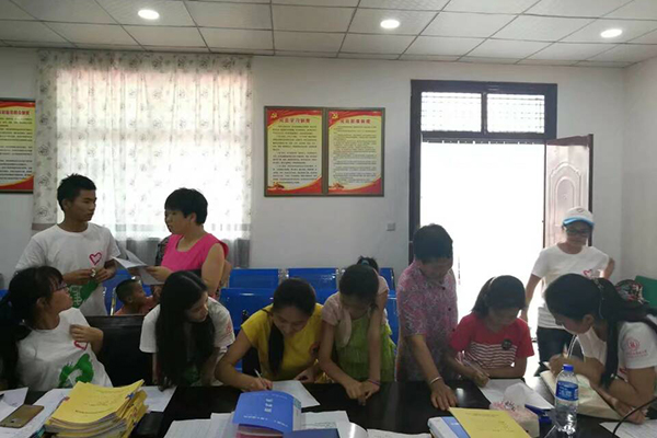 尽管大家刚刚结束了期末考试,尽管大家早上苦等了两个多小时的16路公交汽车,尽管有的同学在这个时候想念着家乡,但支教的热情给予着他们巨大的前行的动力。抵达目的地后,队长和村支书等村干部进行了深入细致的交流沟通,经过协商,队伍决定下午在村委会进行现场报名。随后,村委会干部用广播将队员们前来支教的消息通知给了全村,队员们怀着激动地心情等待着孩子们报名那一刻的到来。