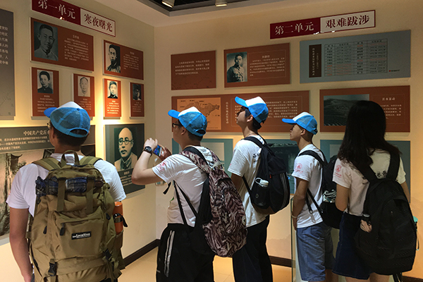 在革命根据地旧址展览室的墙上,队员们发现了对曾经在沂蒙山战斗过的陈毅、罗荣桓、徐向前等老革命家以及根据地各个下属部门的介绍,室内陈列着革命斗争时期的老式电报机和煤油灯等物品,而这时队员们将注意力都集中在了一面党旗上。讲解员告诉同学们,这面党旗历经无数次战争,见证了无数革命英雄的牺牲,如今在和平安定的今天被人们缅怀。