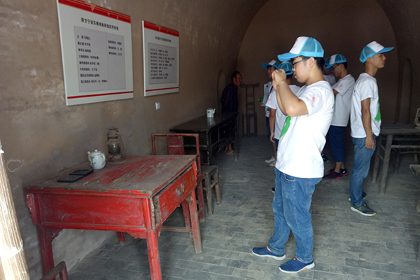 随着参观的不断深入,讲解员将当年发生在这片土地上的故事为小队的一行人娓娓道来。1936年至1950年这十四年间,在这个条件十分艰苦的山沟里,李富春、习仲勋、马文瑞、马锡五等老一辈无产阶级革命家都曾在这里生活和工作过,留下了许多他们和环县的英雄事迹。在纪念馆内,成员们还见到了许多那个年代特有的物品,例如马鞍、当年的电报机、大刀等。这些陈旧的物品见证了一批又一批的革命党人为民族独立和人民解放而牺牲一切的光辉岁月。老一辈革命党人用自己的鲜血构建了这个在其他国家看来是一个奇迹的大国。