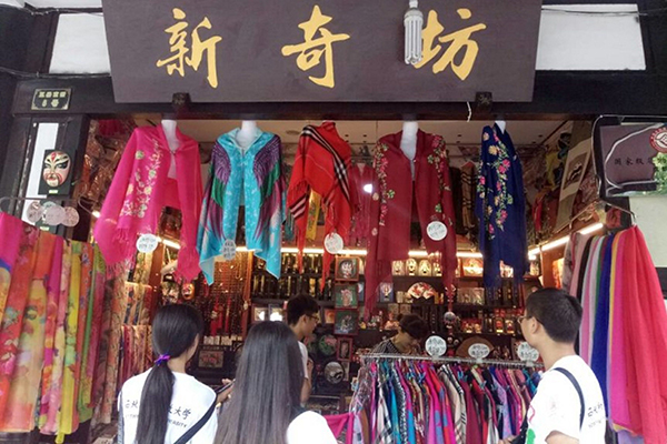 女店主热情地招待了队员,并耐心地回答了同学们的一系列问题。由于地域原因,光顾此店的顾客一般以当地人为主,购买力不强;同时,受现代审美影响,传统手工艺品不再受人们追捧。调研结果显示,传统手工艺品的销售情况并不理想,相关行业处于进步缓慢或停滞阶段。随后,在店主的帮助下,队员们收集了店铺销售产品种类、价格等相关信息,对蜀锦蜀绣传统手工艺品销售情况有了初步的了解,为后继行动做好铺垫。