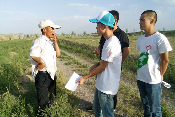 队员正在对贫困户大叔进行问卷调查